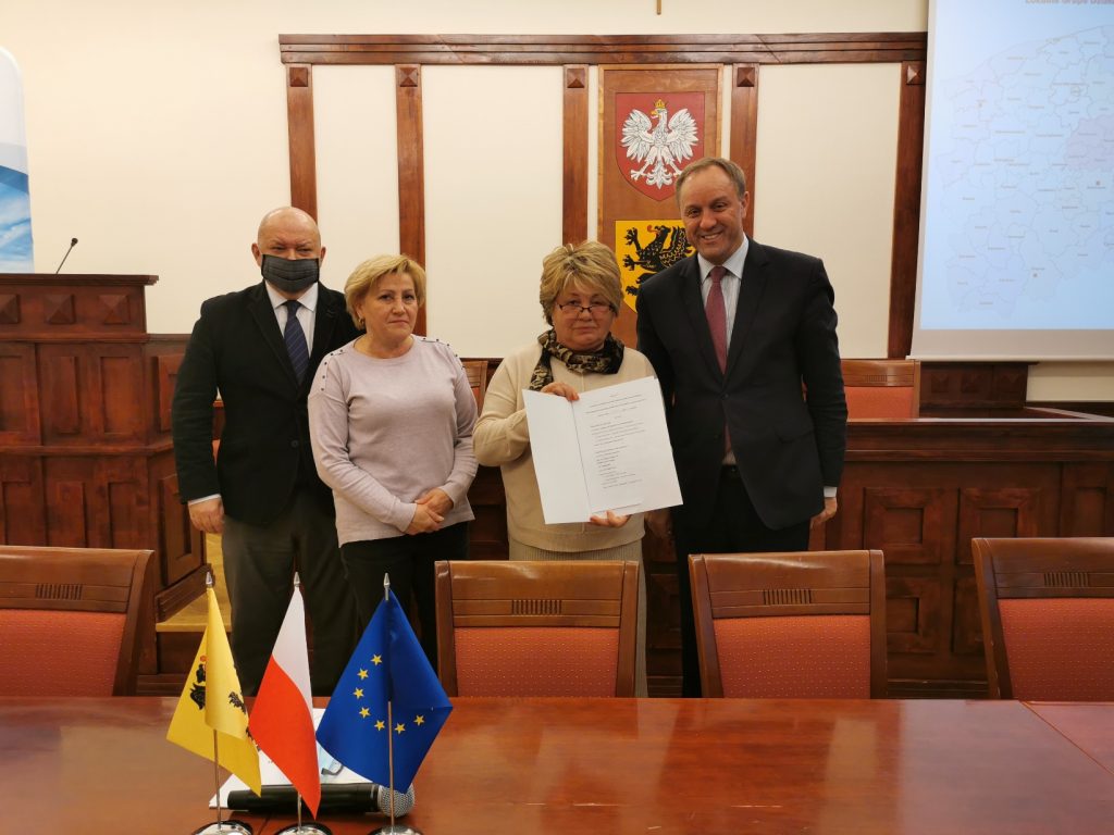 Umowy zwiększające dofinansowanie podpisali 27 października 2021 r. marszałkowie województwa pomorskiego Mieczysław Struk i Wiesław Byczkowski oraz Pani Prezes Emilia Grzyb i Pani Wiceprezes Halina Wrocławska w imieniu LGD „Trzy Krajobrazy”.